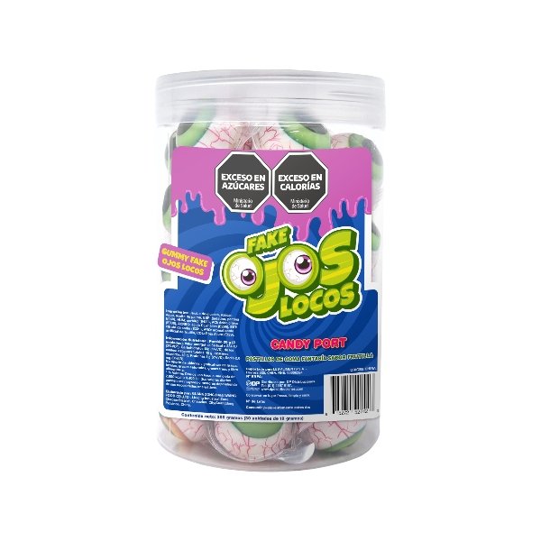 Gomas de fantasia con diseño en de ojos en el blister sabor frutilla