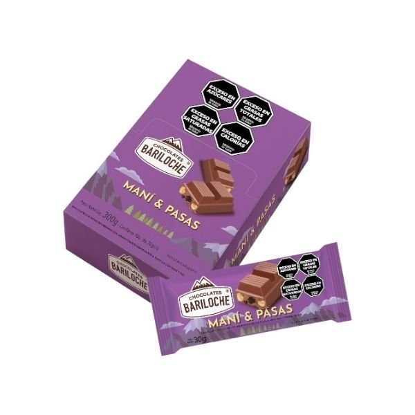 Tableta chocolate bariloche 30g mani y pasas